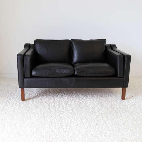Danish Børge Mogensen Style Black Leather Studio Sofa