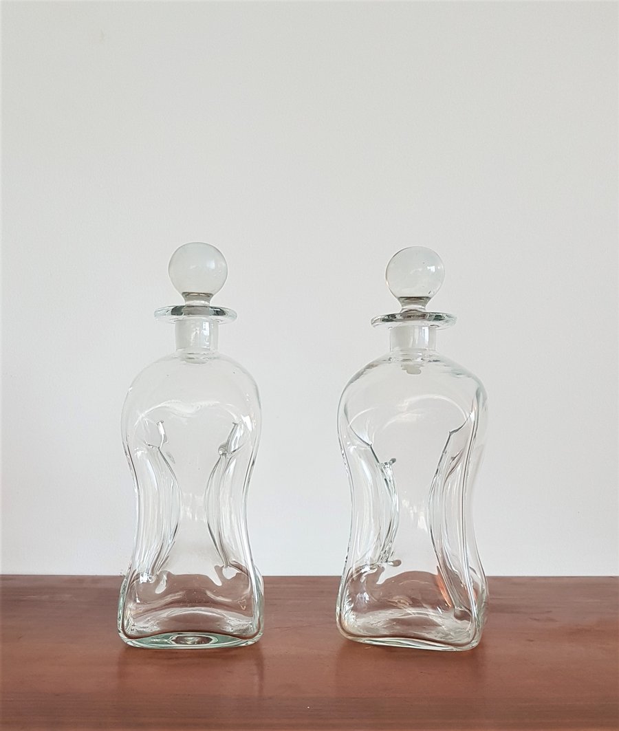 Danish Kastrup Glas (Holmegaard) Pair of 'Kluk Kluk' Clear Glass Decanters by Jacob E Bang