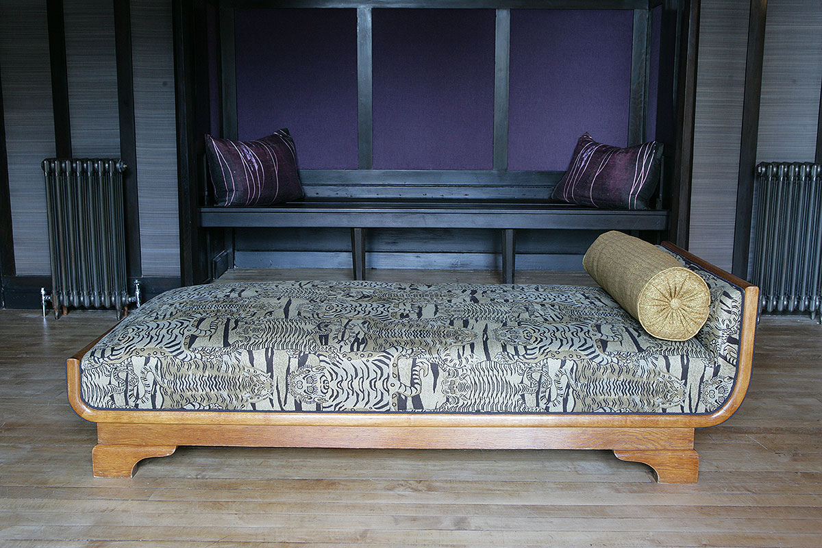 Danish Mid Century Daybed in Tibetan Tiger Fabric