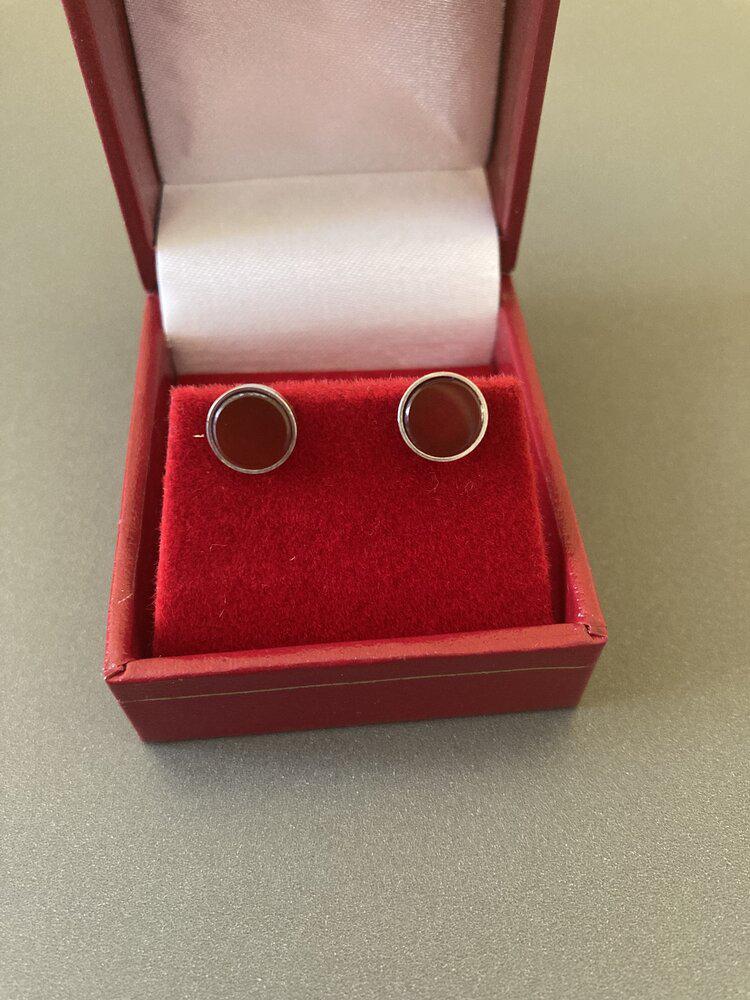 Danish Silver and Red Agate Earrings. By N E From (1 of 5)