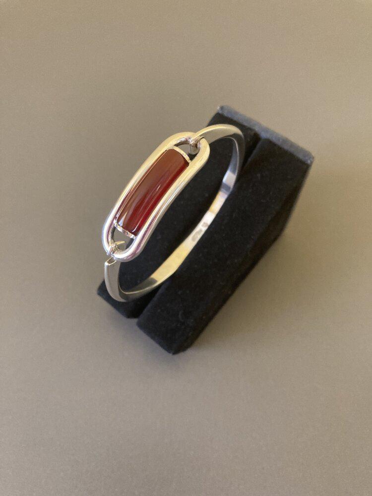 Danish Silver Bangle with Red Agate. By N E From (1 of 5)