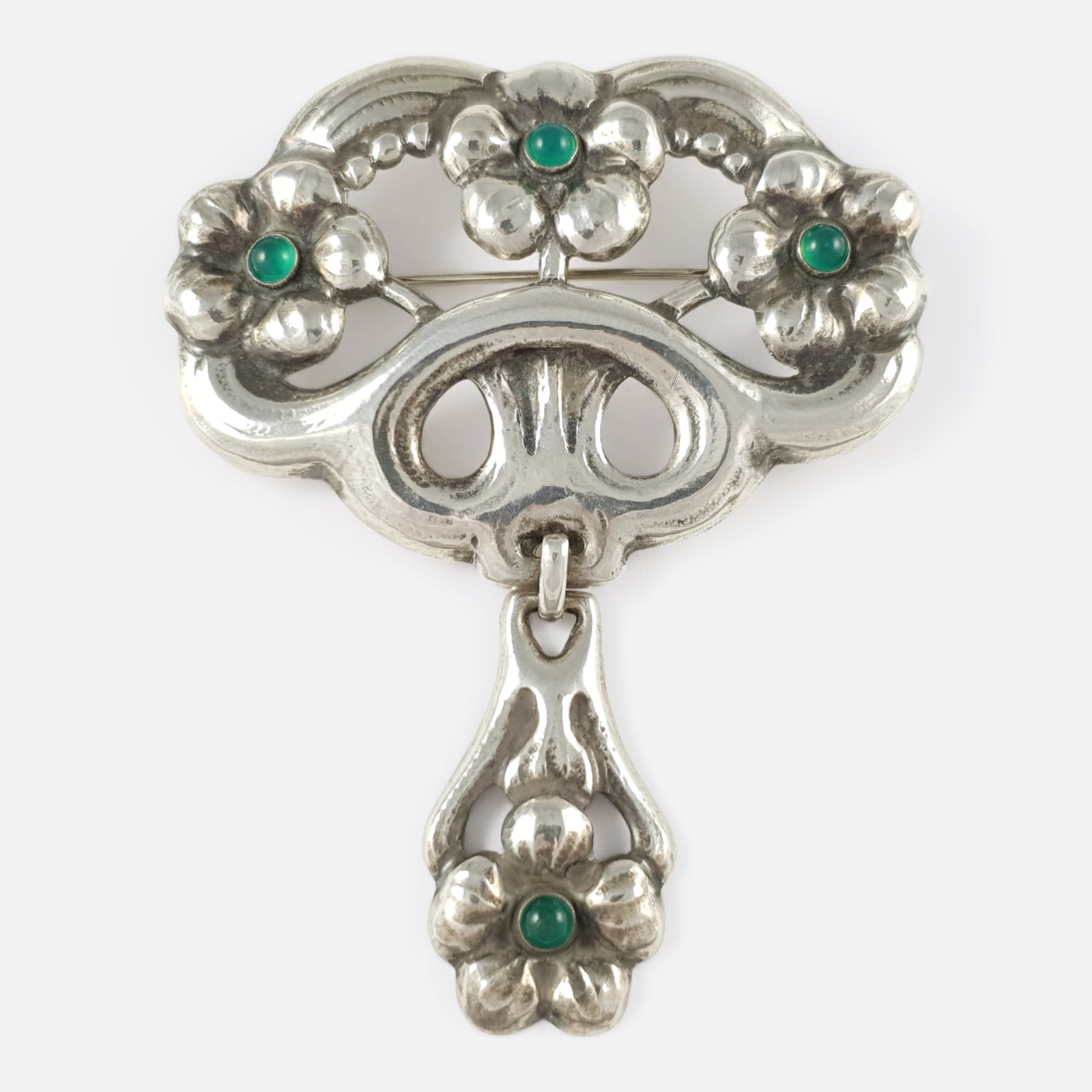 Danish Skønvirke Silver & Chrysoprase Cabochon Brooch William Fuglede