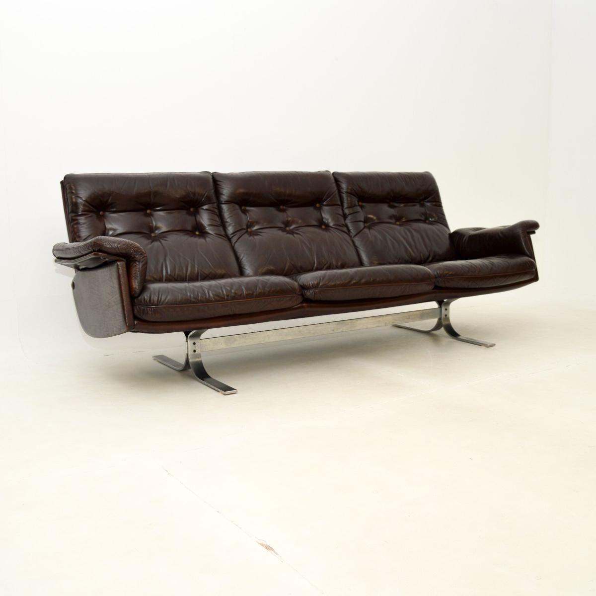 Danish Vintage Leather and Chrome Sofa by Ebbe Gehl and Soren Nissen