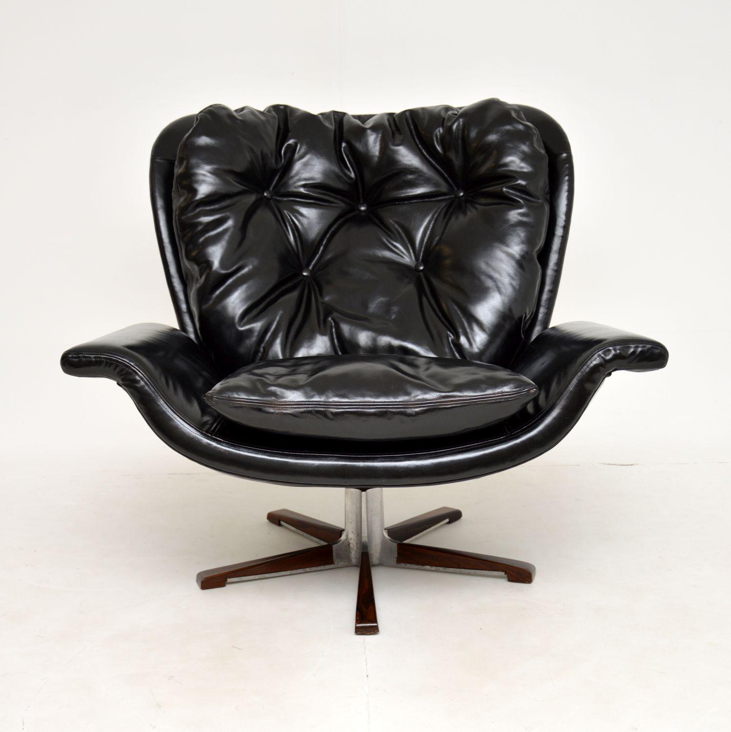Danish Vintage Leather & Rosewood Swivel Armchair