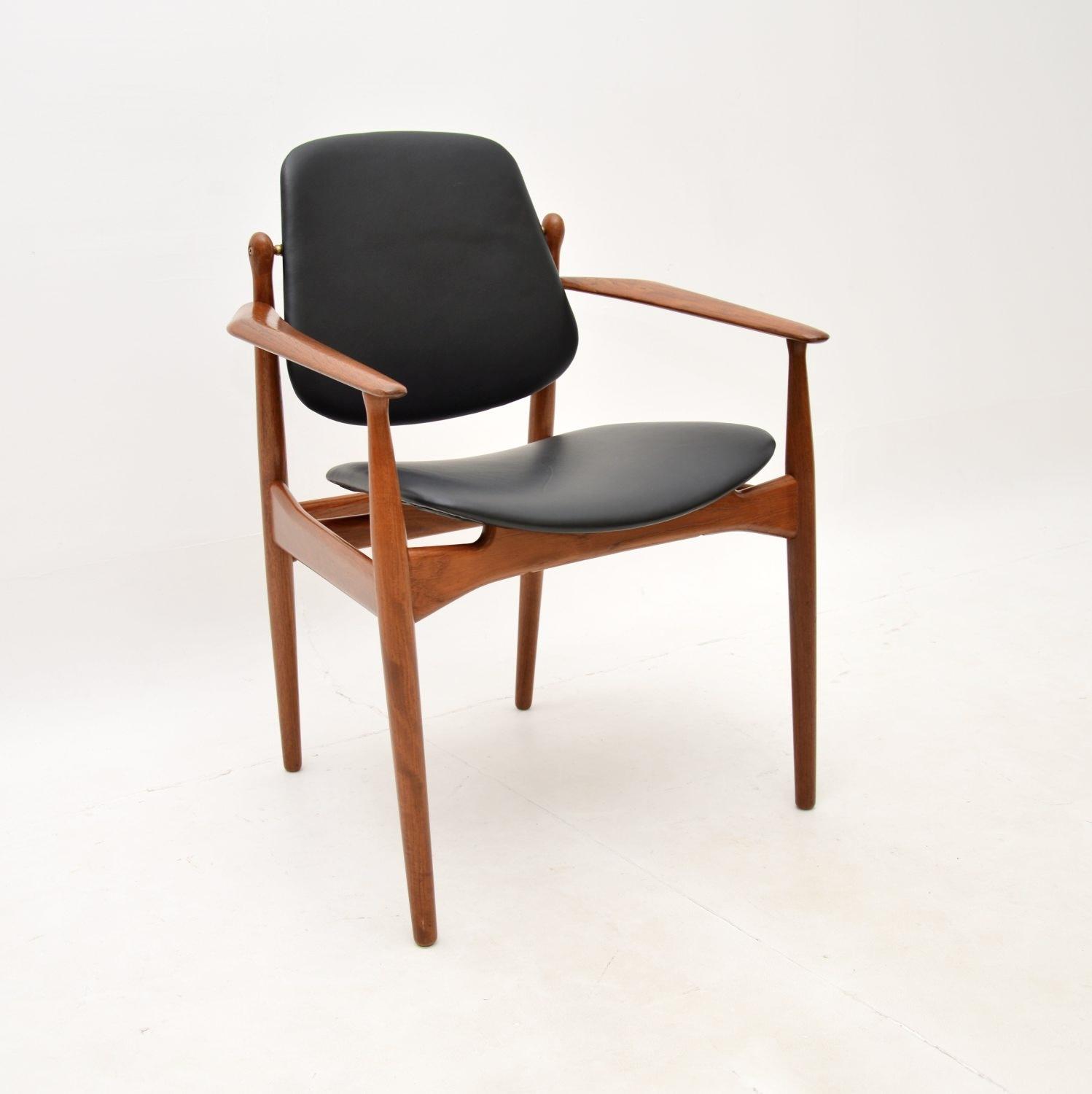 Danish Vintage Teak and Leather Armchair by Arne Vodder