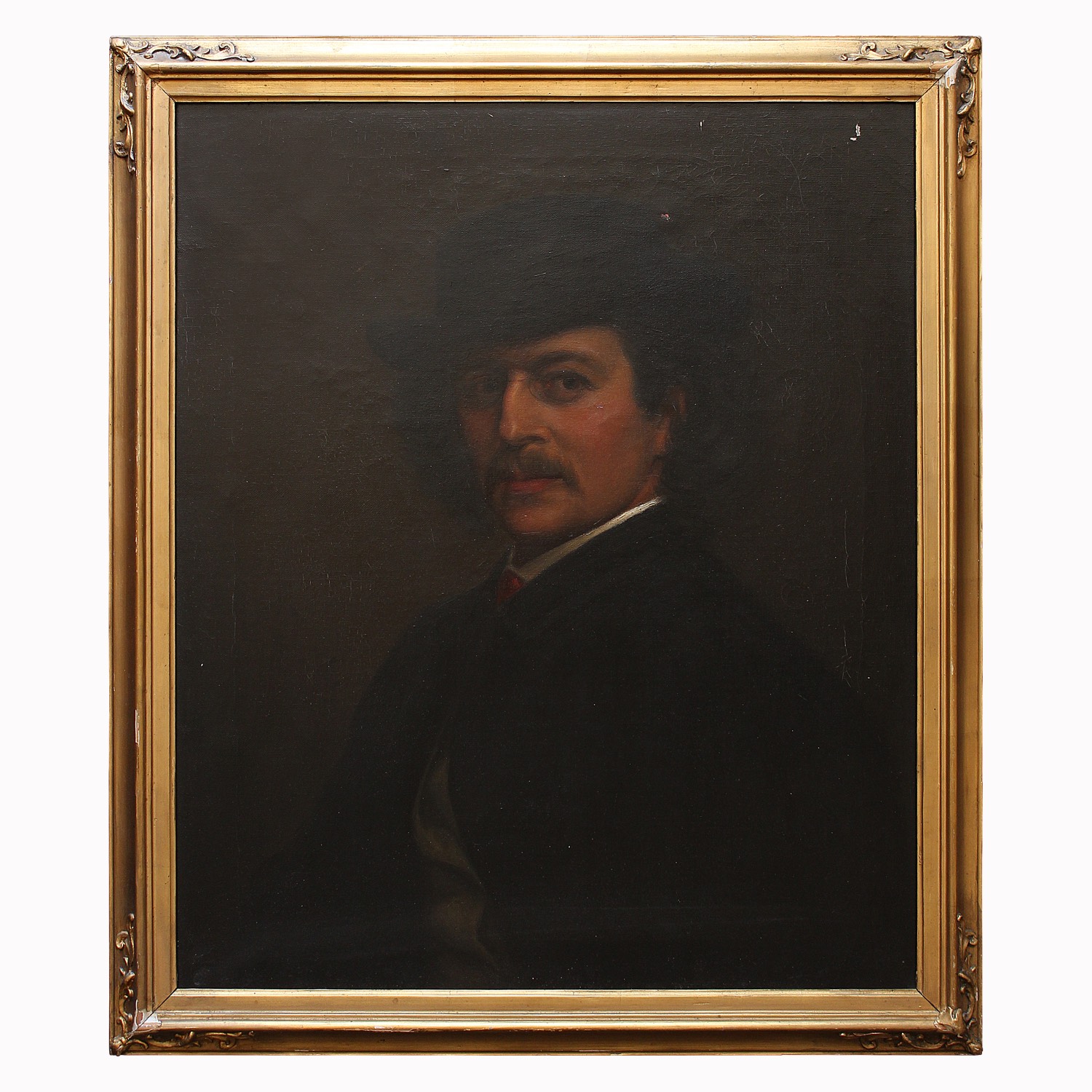 Dark Portrait of a Gentleman with a ‘Pork Pie’ Hat, Oil Painting