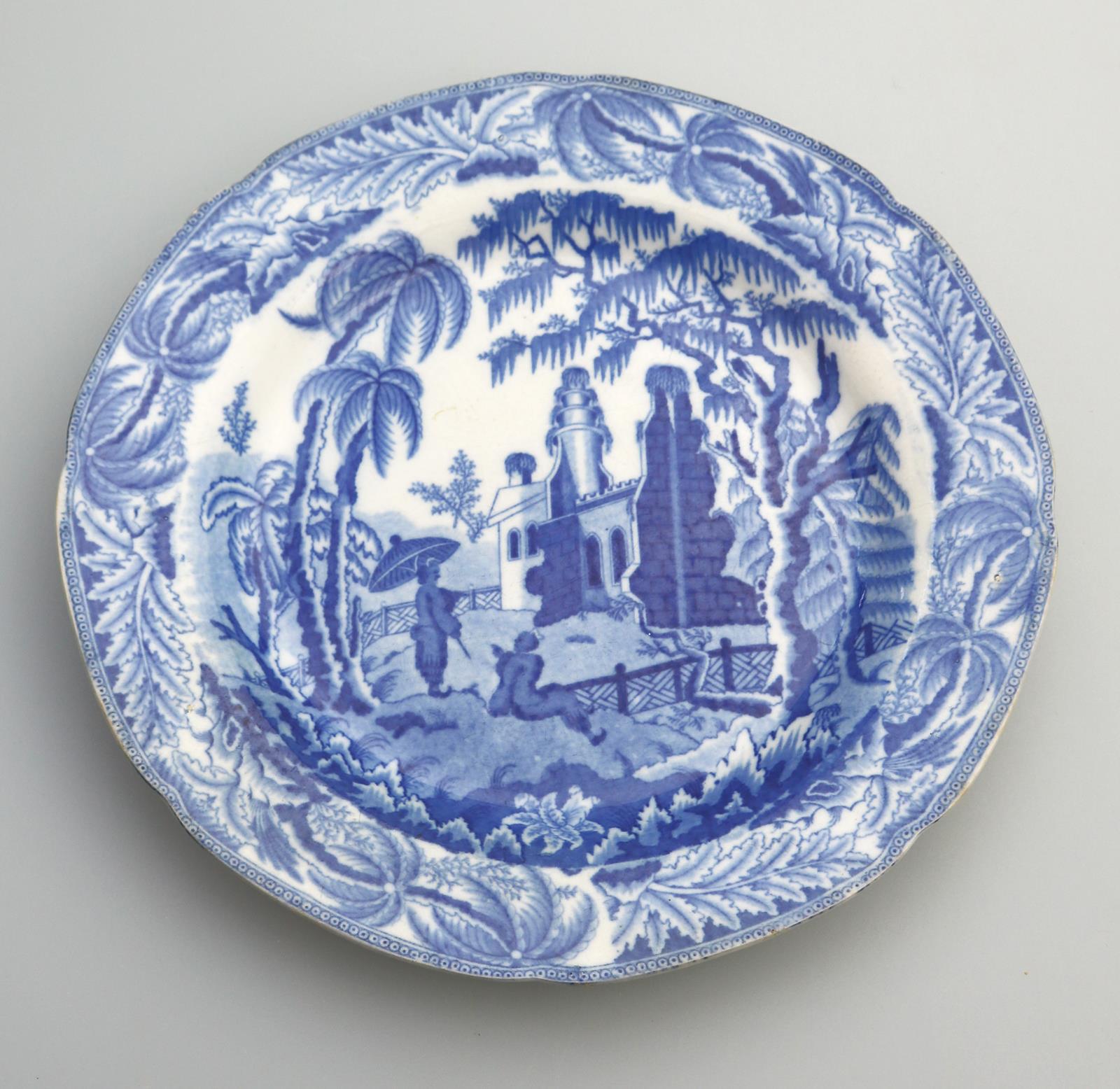 Davenport - Early Pottery Chinoiserie Ruins Blue & White Plate c.1800
