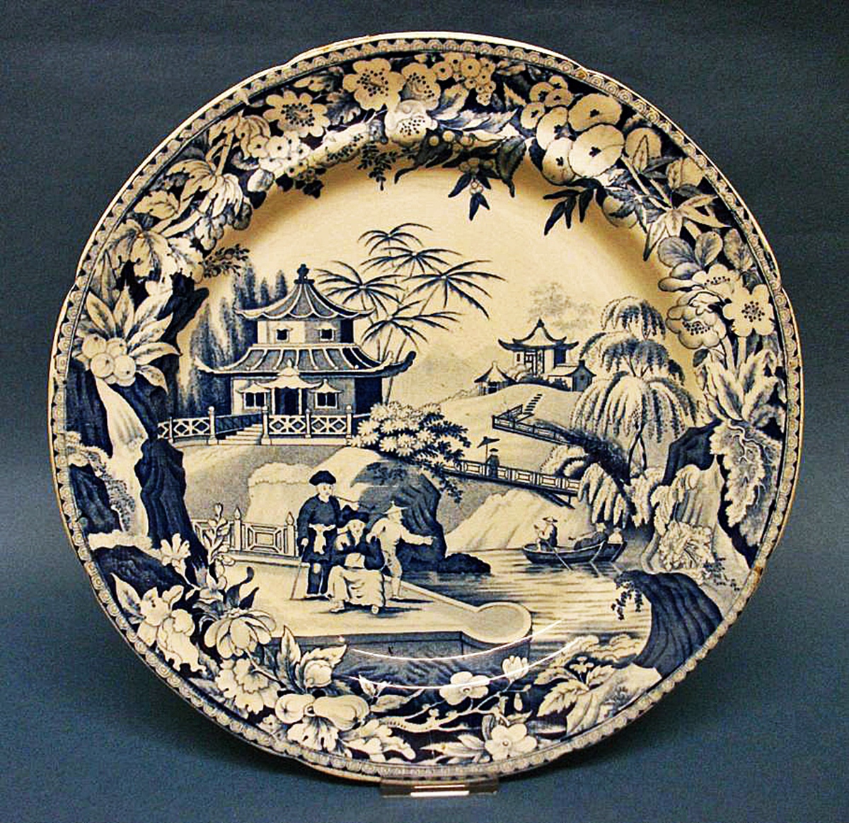 Davenport Transfer Printed Plate 'Chinoiserie High Bridge' with Early Impressed Mark C.1810