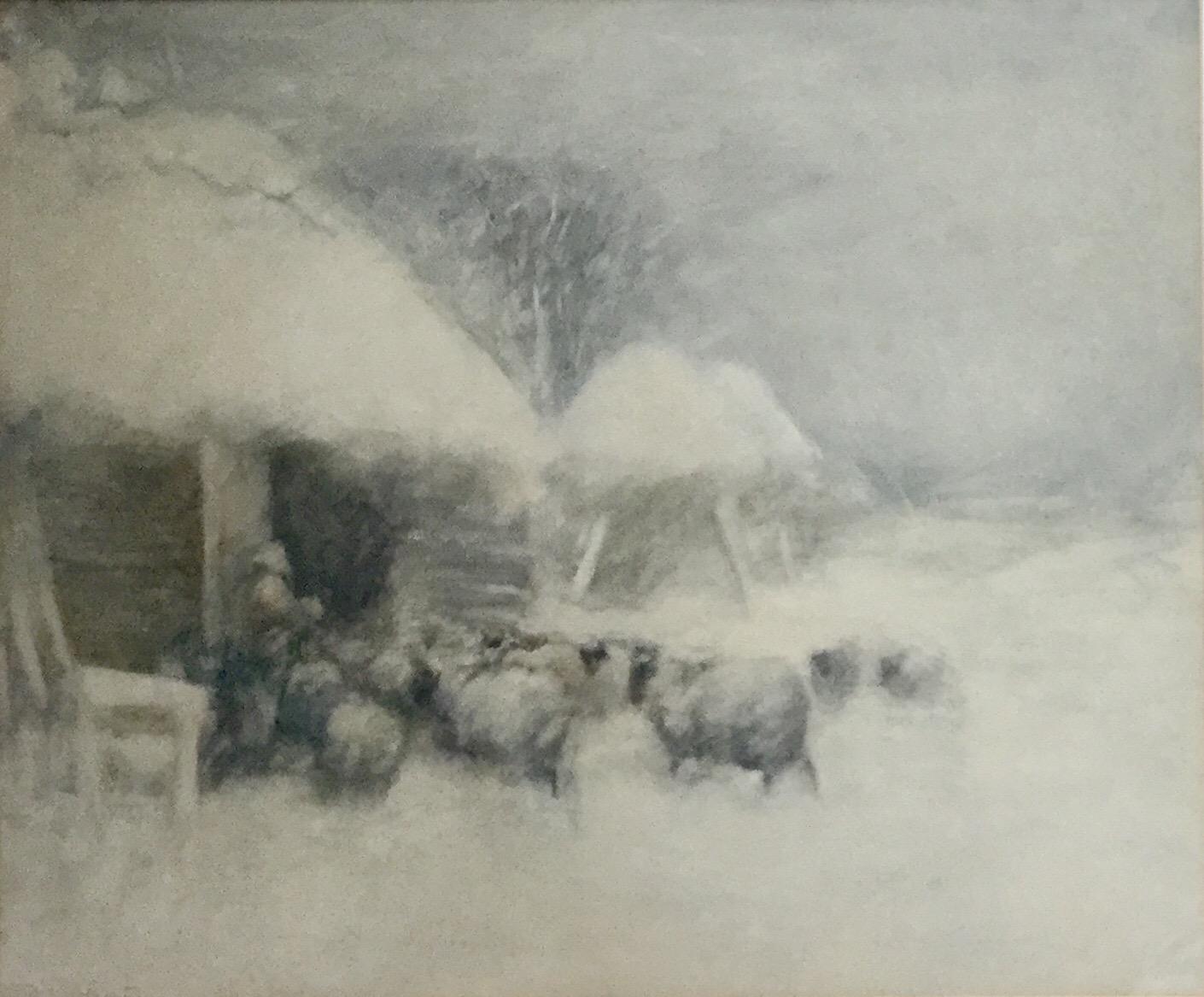 David Thomas Robertson Watercolour - Feeding Sheep in Snowy Winter (1 of 2)