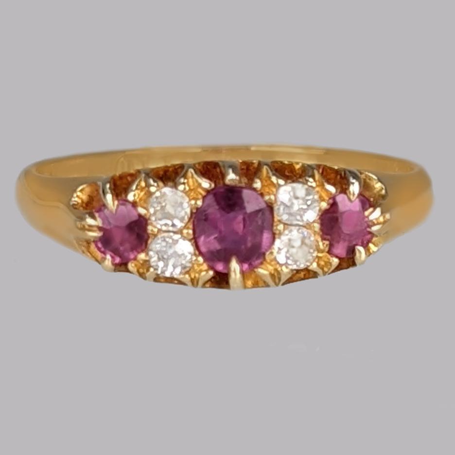 Deakin & Francis Victorian Ring Ruby & Old Cut Diamond 18ct Gold Antique Ring