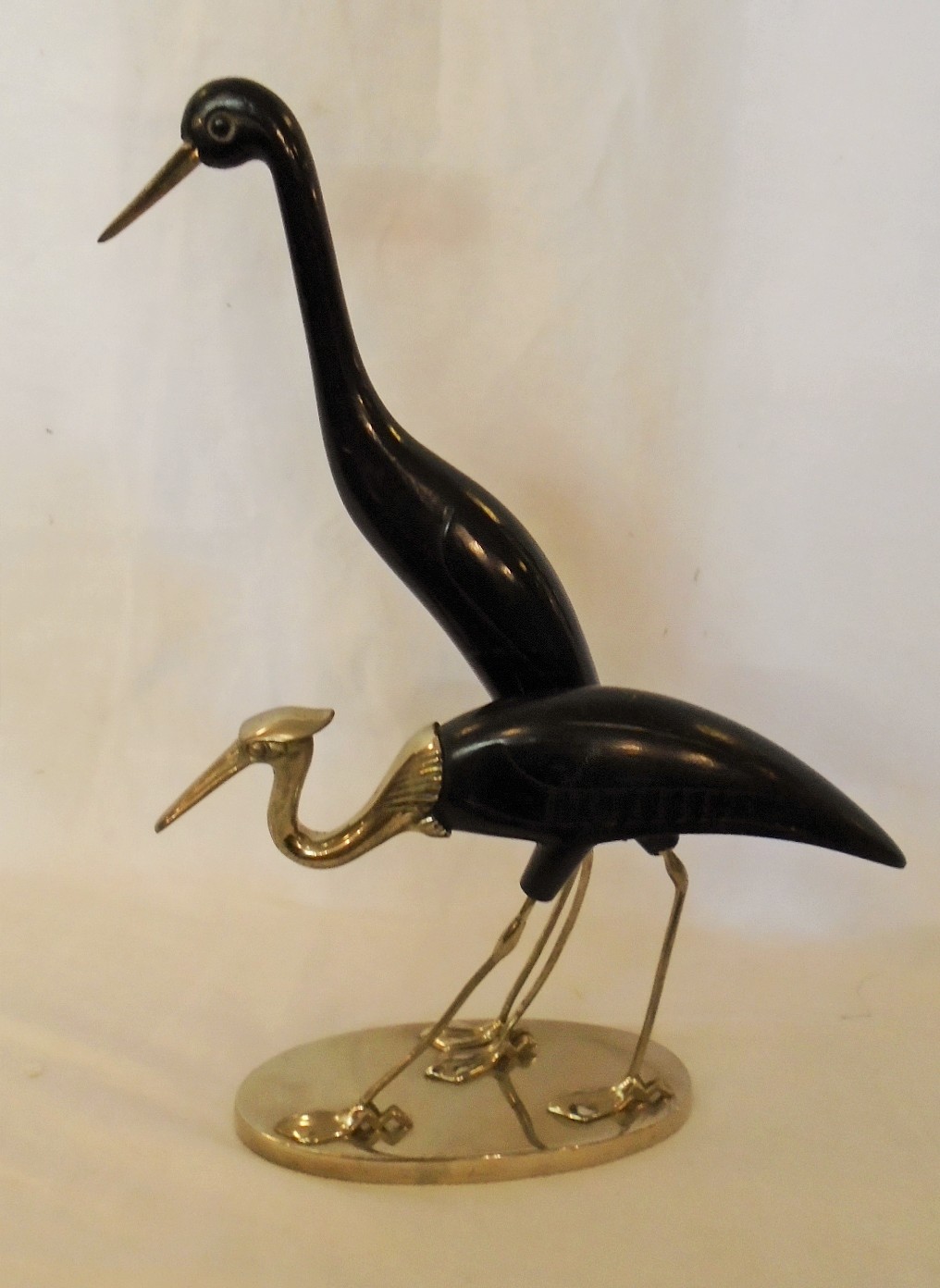 Debrecen Chrome & Wood Figural Sculpture of Storks