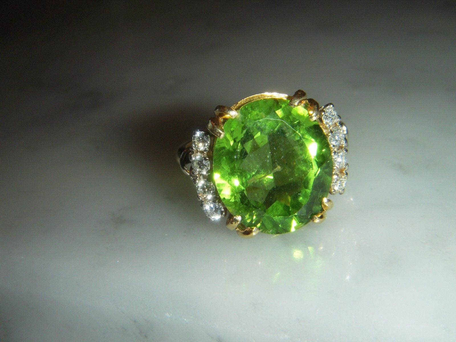 Deco 18ct Gold 8.00 Carat Peridot & Diamond Ring