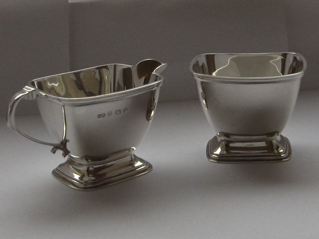 Deco Hallmarked Silver Sugar Bowl & Cream Jug