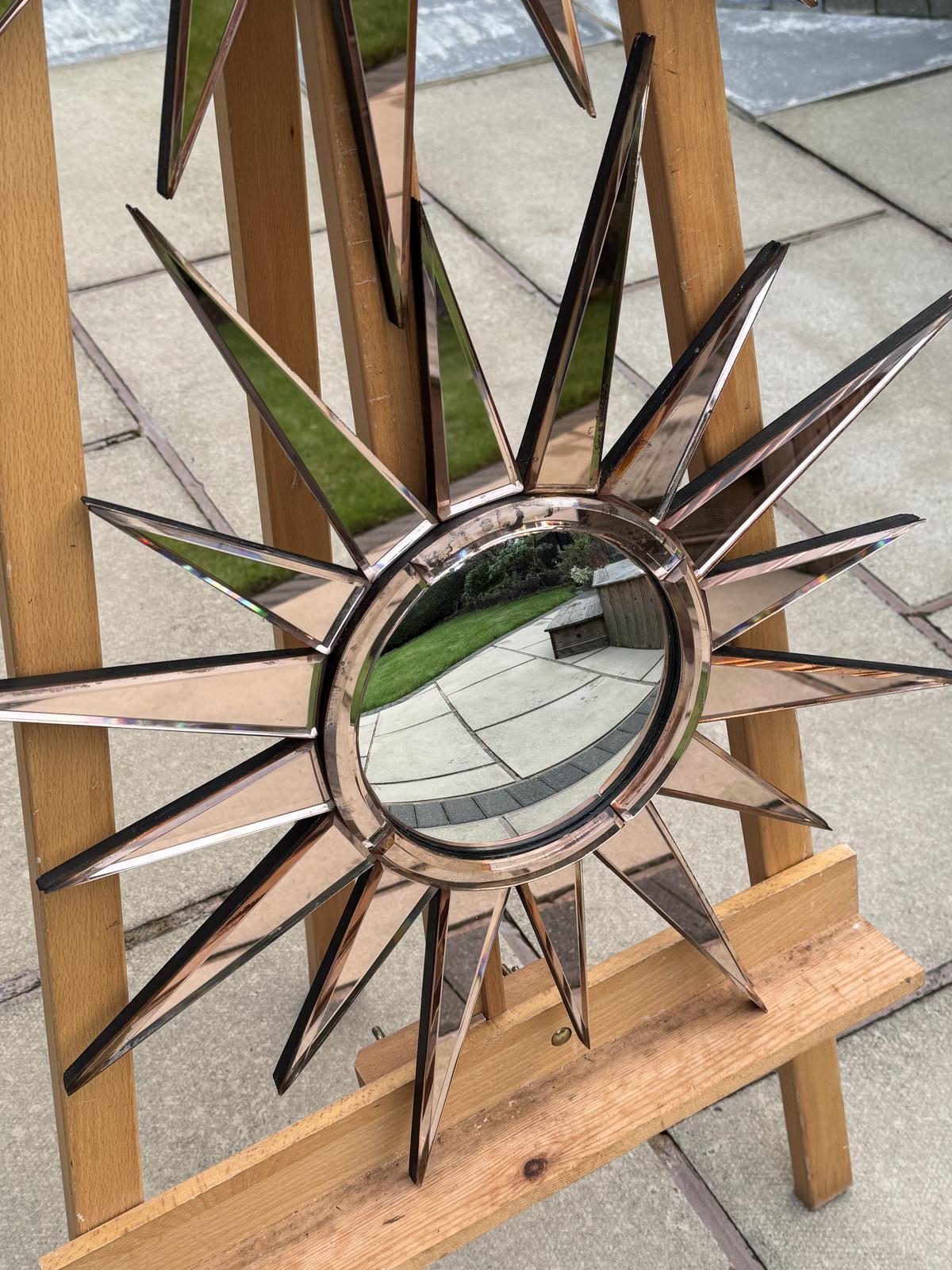 Radiating off the centrepieces are 16 Sunray mirrored pieces. Each of these is designed with a pointed end, each piece has a good bevelled edge and all the points are intact.