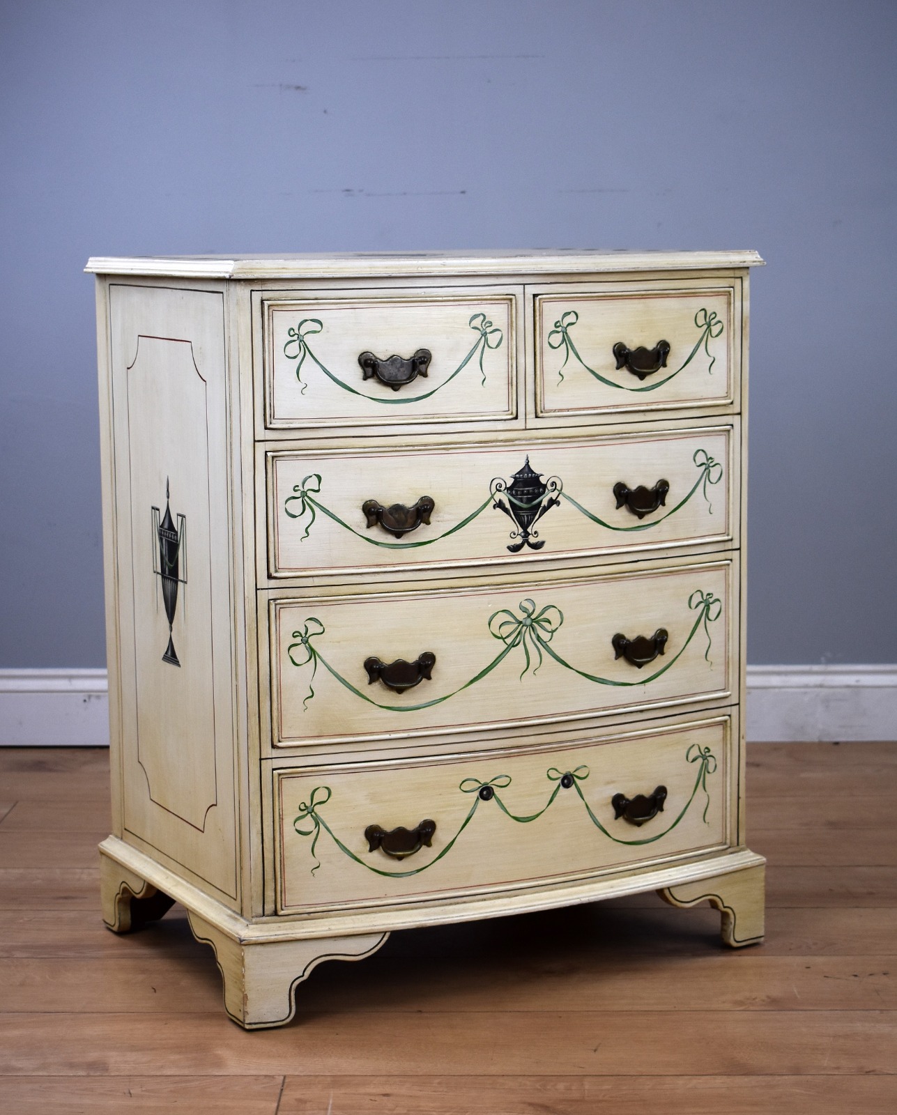 Decorated Painted Bow Front Chest Drawers