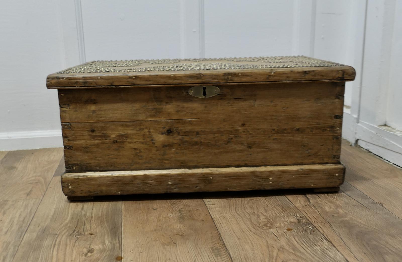 Decorated Victorian Pine Blanket Box with Stud-work Design