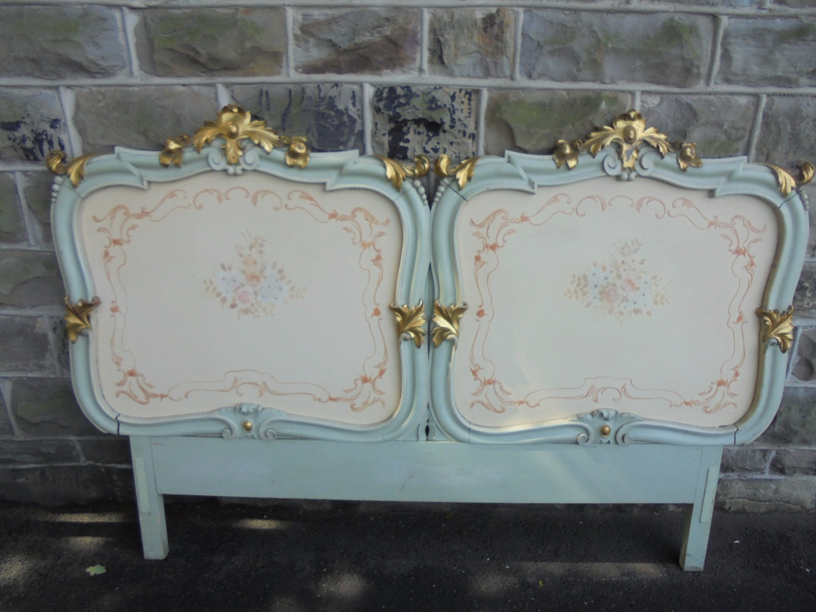 Decorative Antique Carved & Polychrome Painted Headboard (1 of 1)