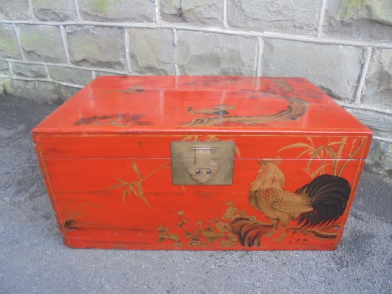 Decorative Antique Red Lacquered Oriental Trunk c.1900