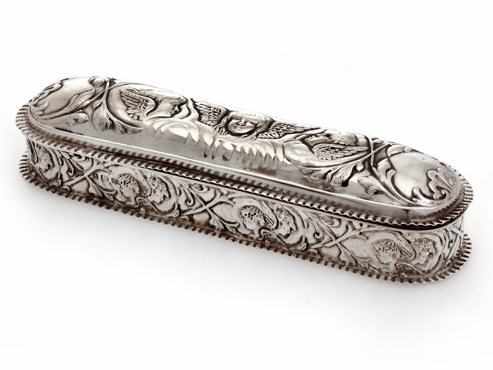 Decorative Antique Silver Trinket Box with Cherubs and Reynolds Angels (1 of 1)