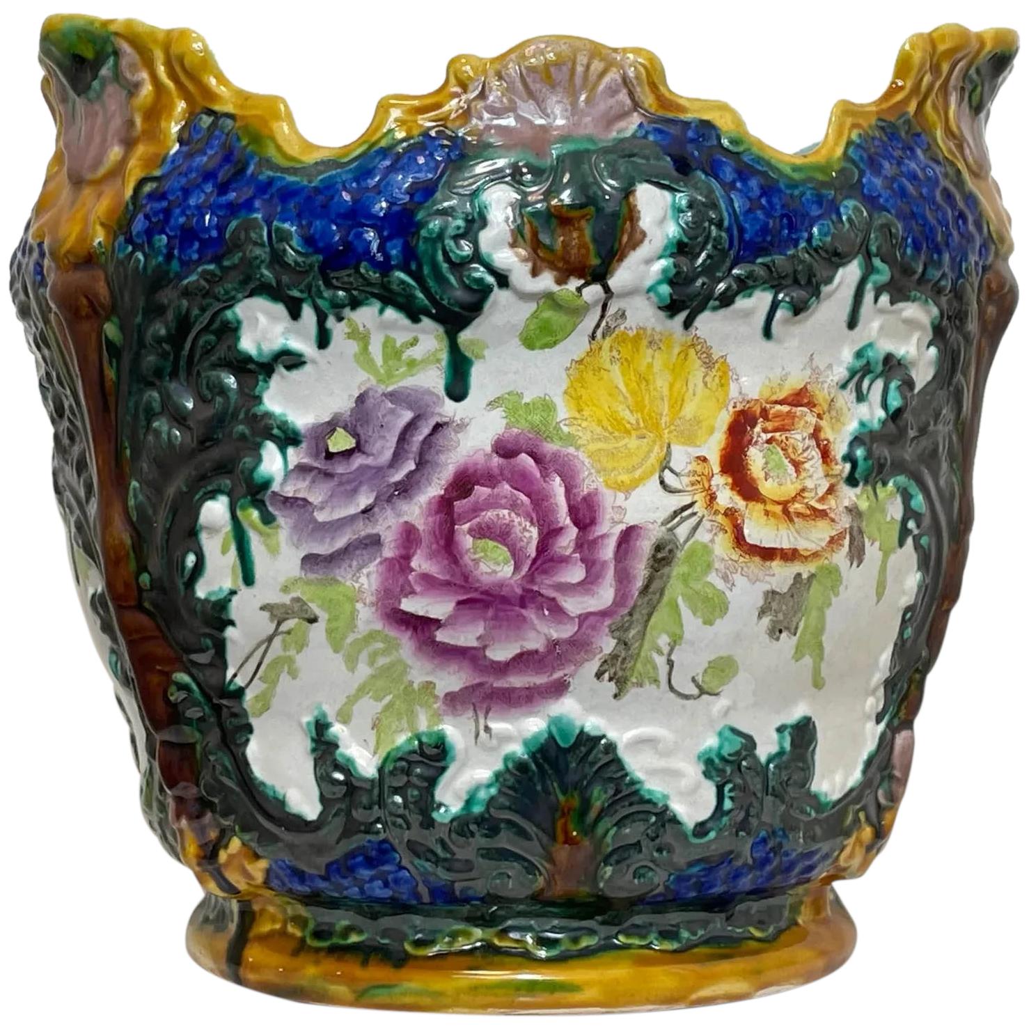 Decorative Art Nouveau Style Porcelain Jardiniere Carnations Vase