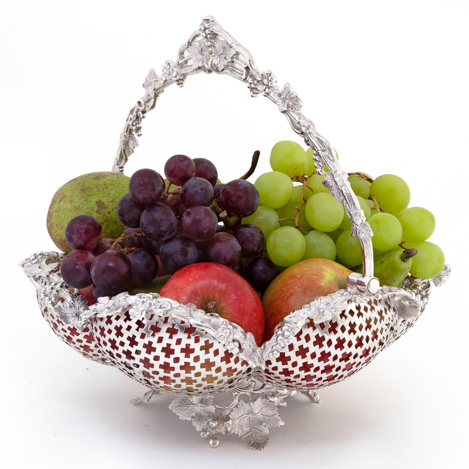 Decorative Cast Victorian Silver Plated Basket with a Pierced Ribbed Body