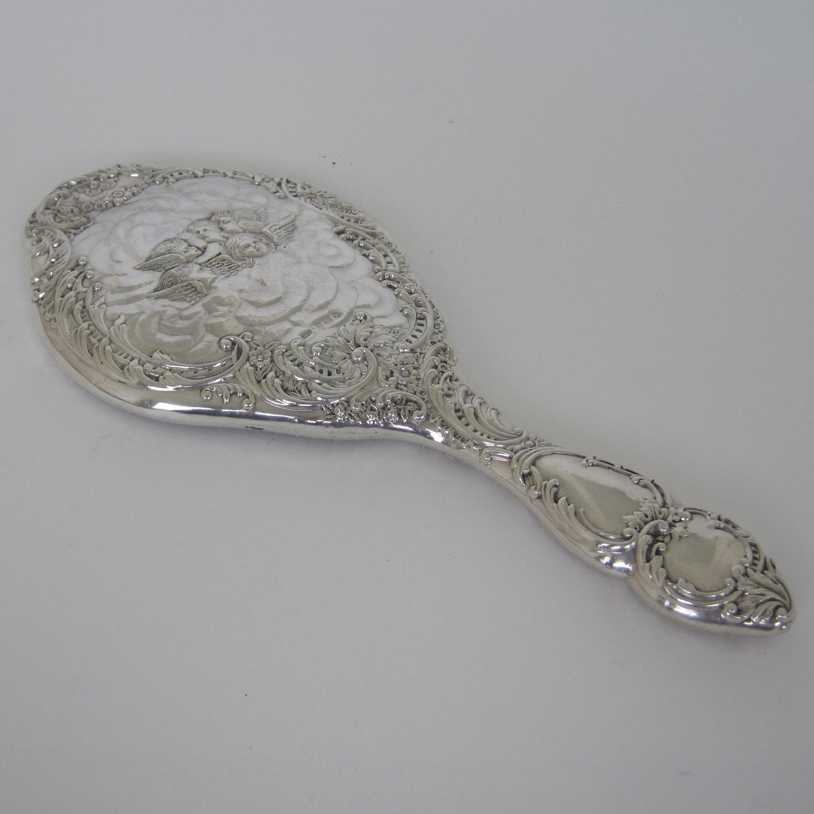 Decorative Edwardian Silver Reynolds Angels Hand Mirror
