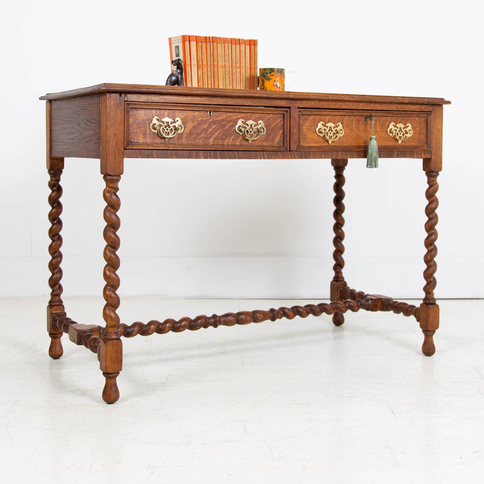 Decorative English Oak Leather Topped Desk c.1910 (1 of 14)