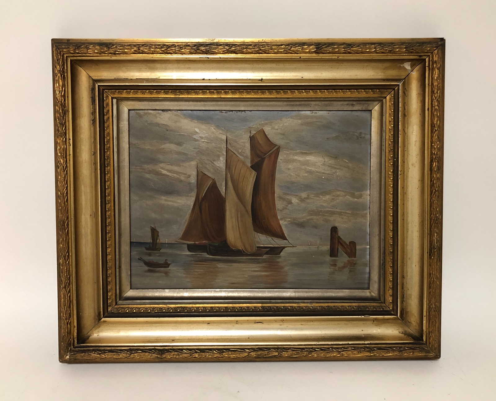 Decorative Framed Oil Painting of a Schooner Ship (1 of 11)