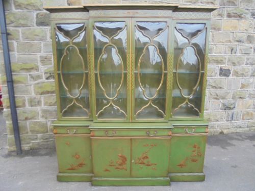 Decorative Lacquered Chinoiserie Breakfront Library Bookcase c.1920 (1 of 1)