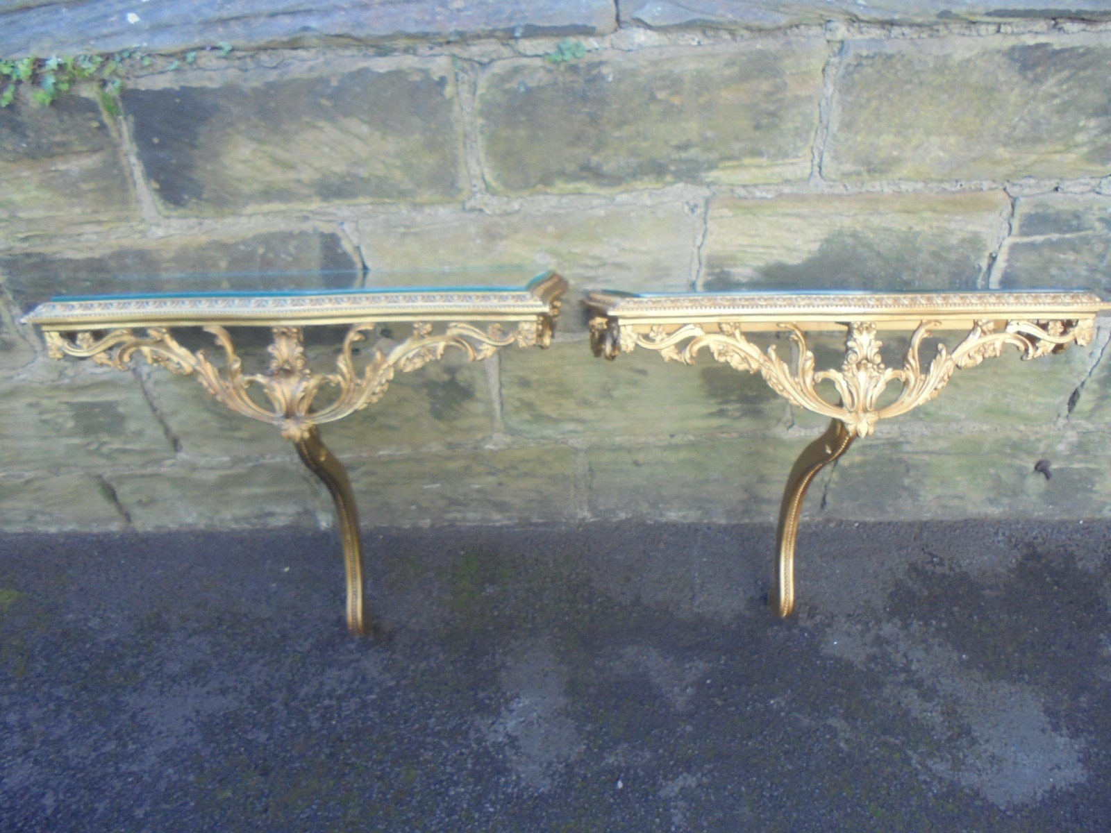 Decorative Pair of Giltwood Glass Topped Console Tables