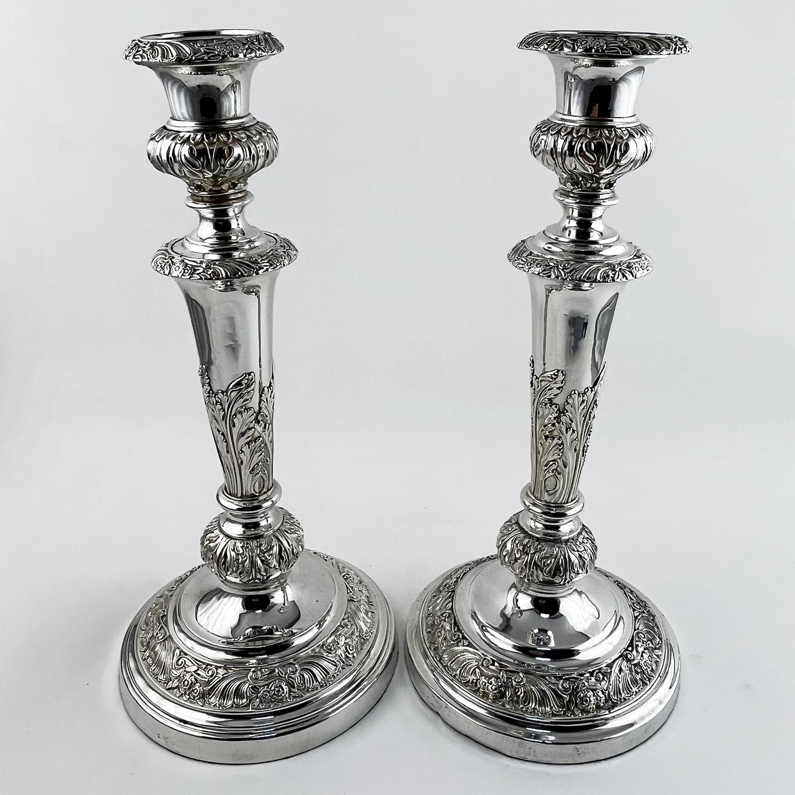 Decorative Pair of Old Sheffield Plate Candlesticks