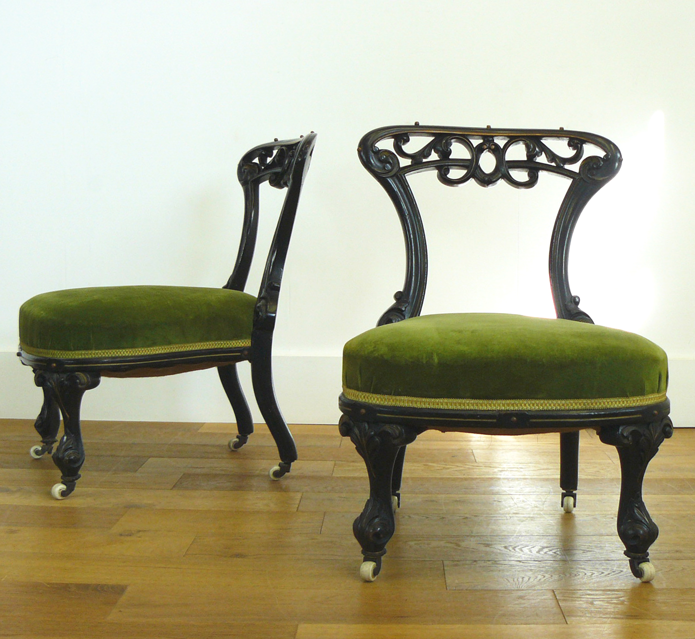 Decorative Pair of Victorian Ebonised Salon Chairs c.1870
