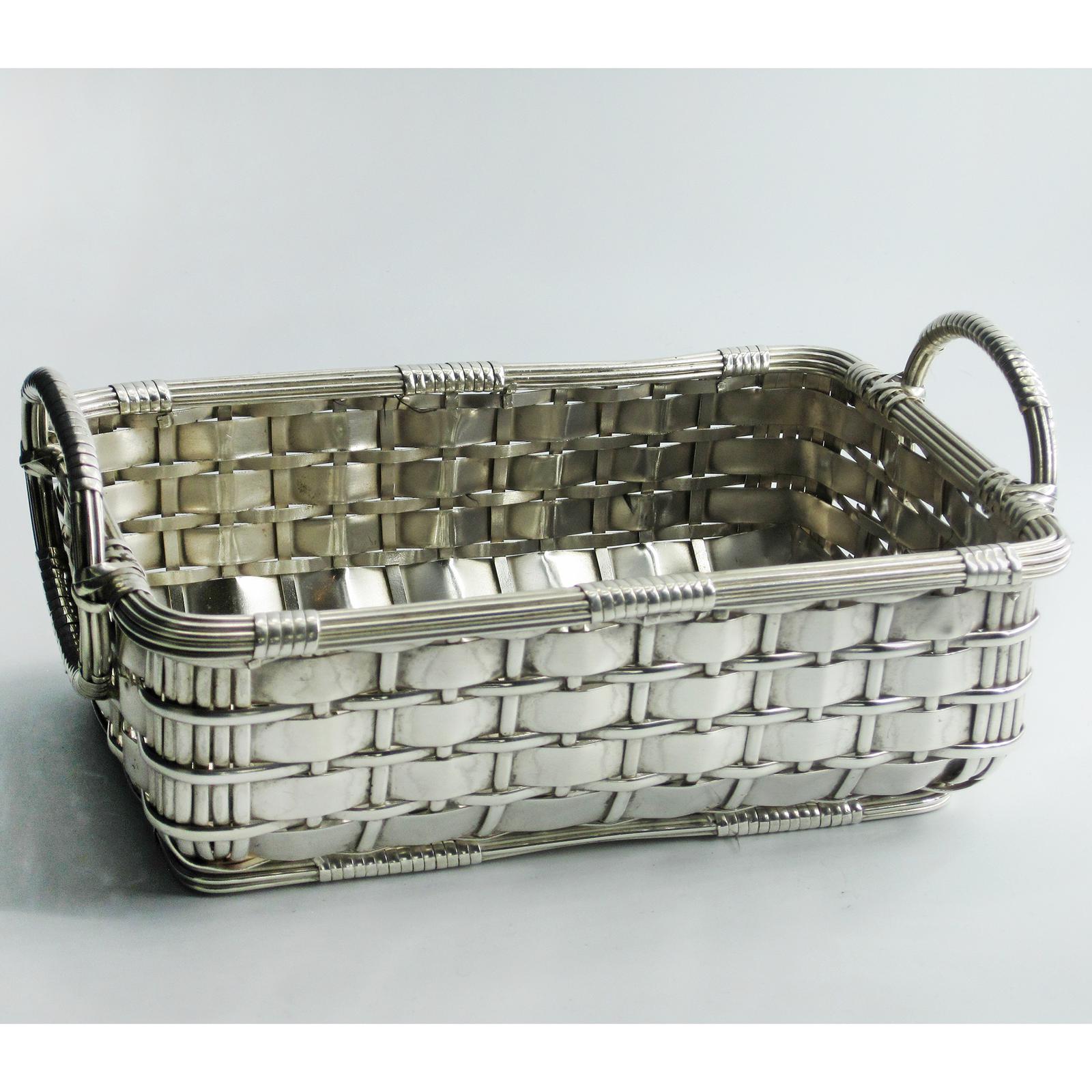 Decorative Silver Plated Rectangular Wicker Style Serving Dish