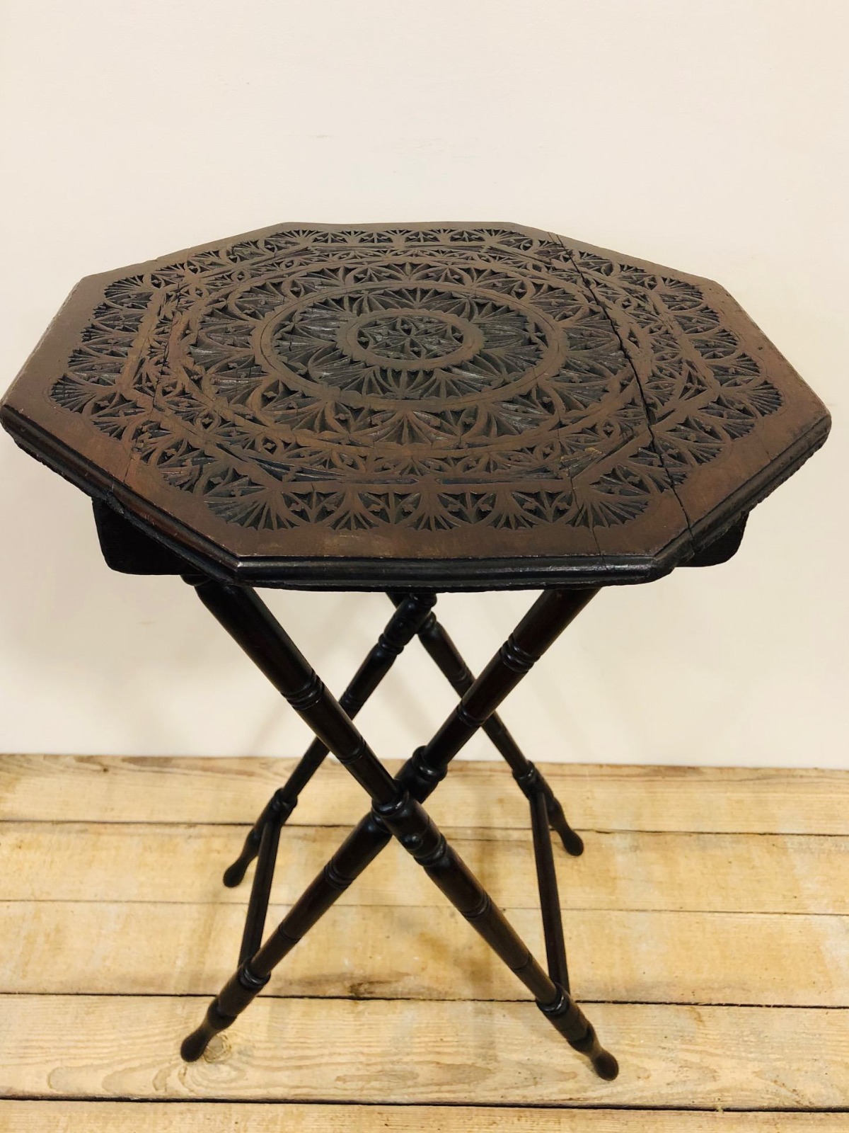 Decorative Small Carved Wooden Folding Table (1 of 1)
