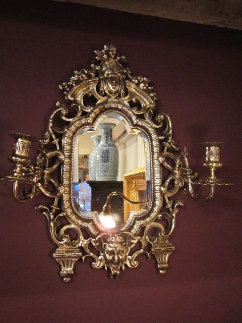 Decorative Victorian Brass Wall Mirror Scounce c.1885