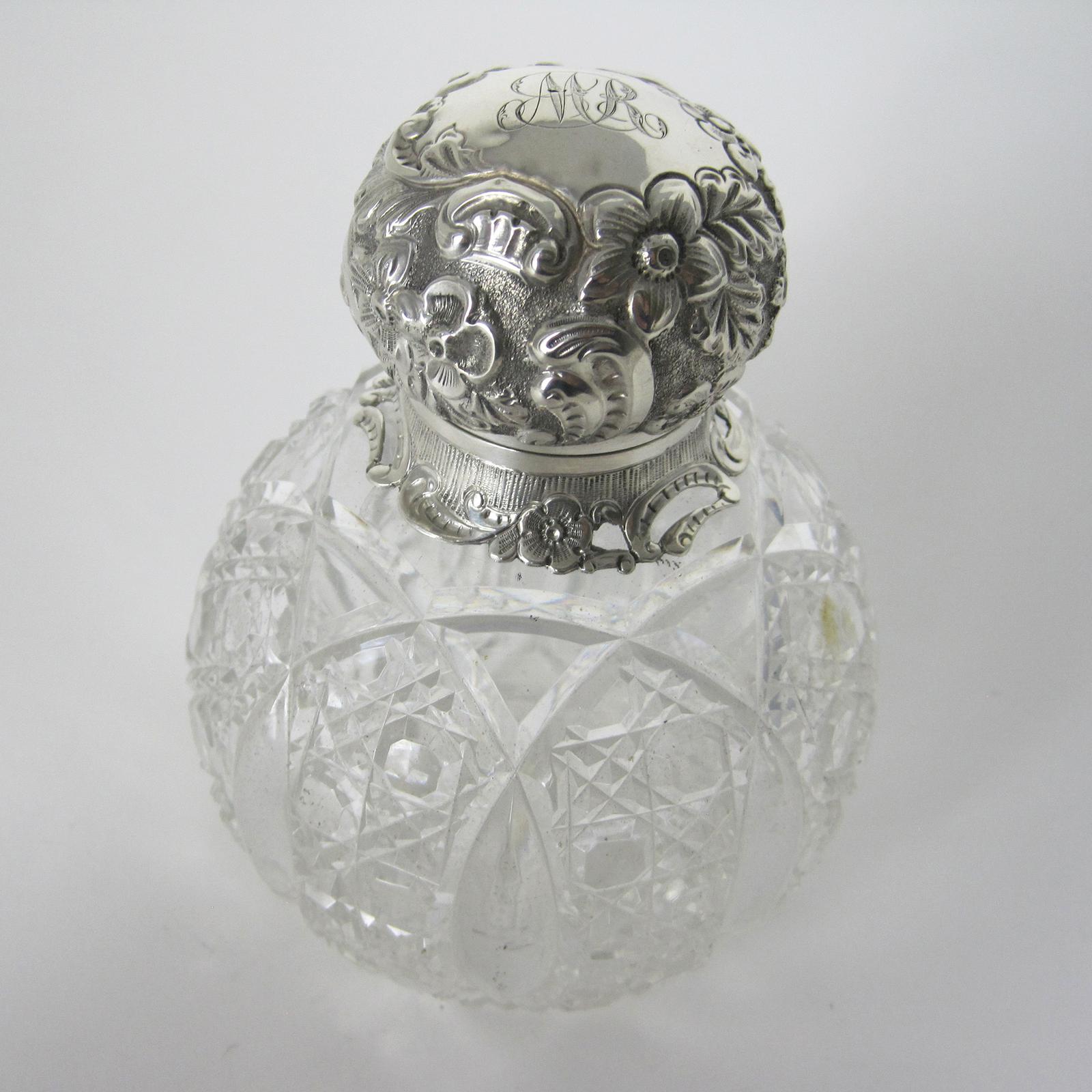 Decorative Victorian John Grinsell & Son Silver and Cut Glass Perfume Bottle