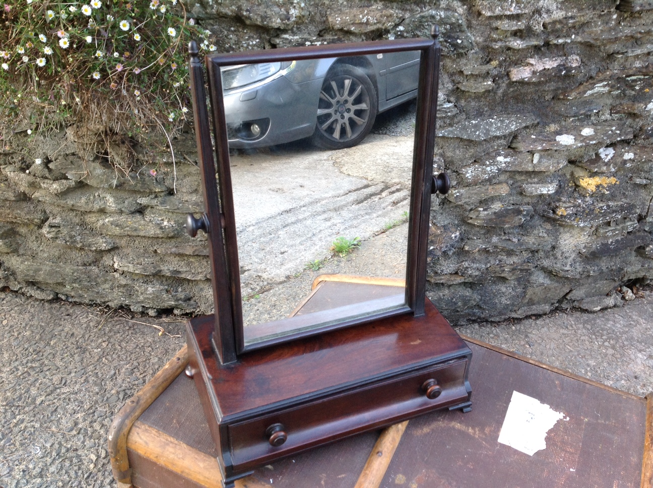 Deep Solid Mahogany Georgian Dressing Table Mirror with Single Concaved Drawer