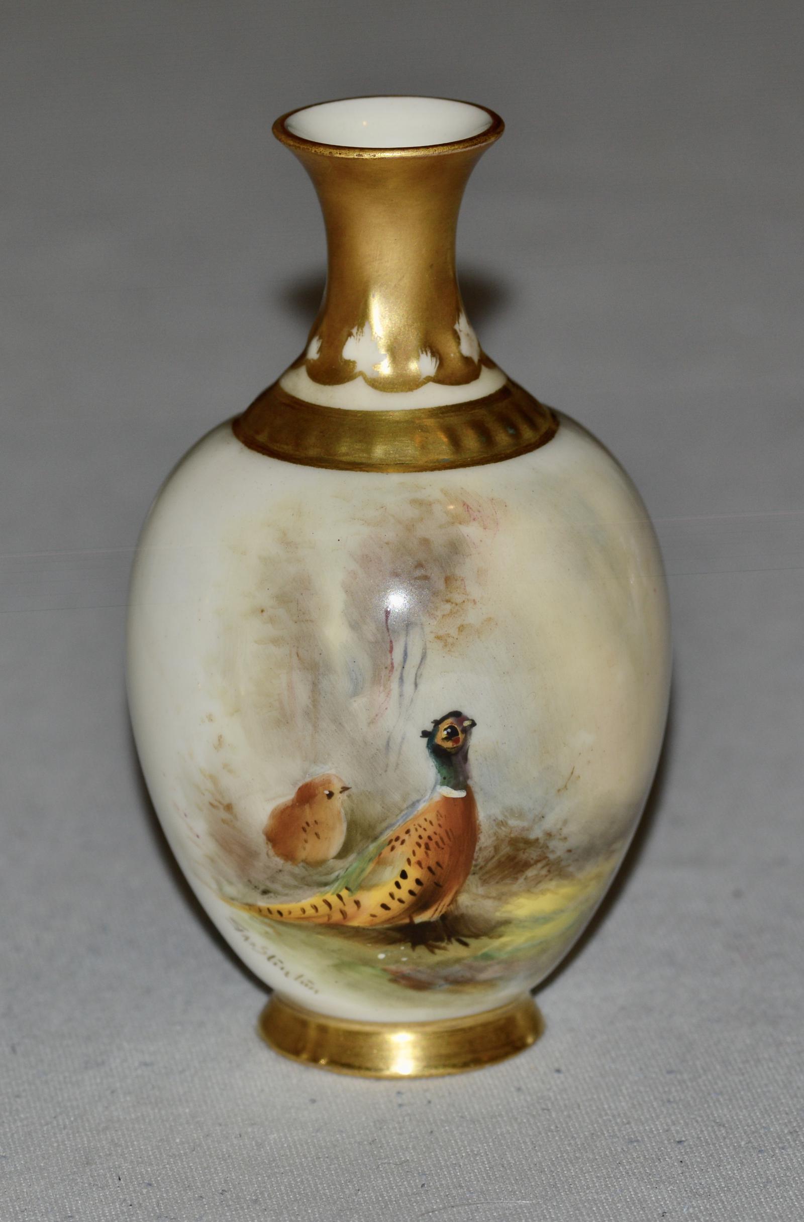 Delightful 1919 Royal Worcester Pheasant Vase by James Stinton