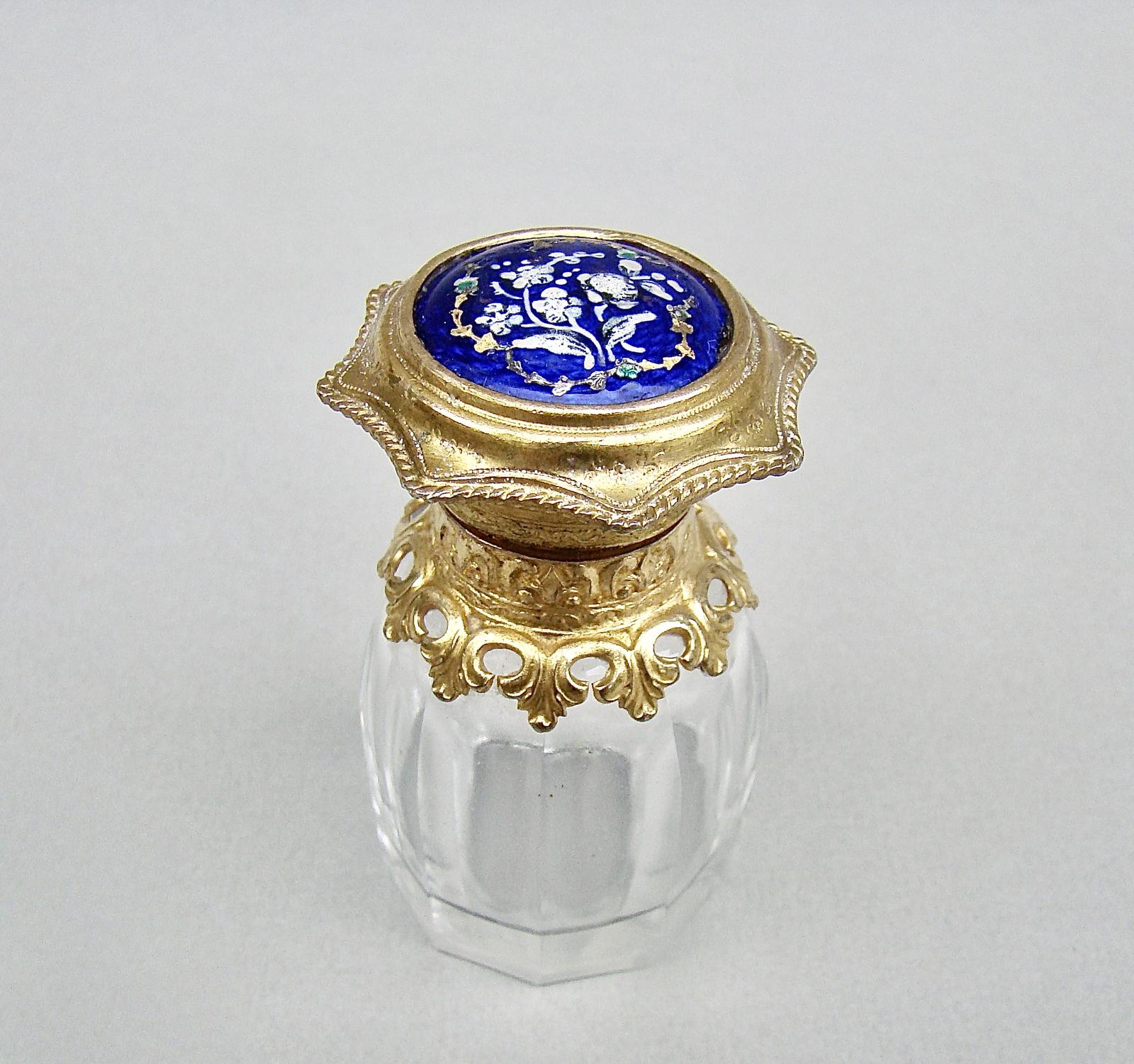 Delightful 19th Century French Palais Royal Enamel & Ormulu Glass Scent Bottle