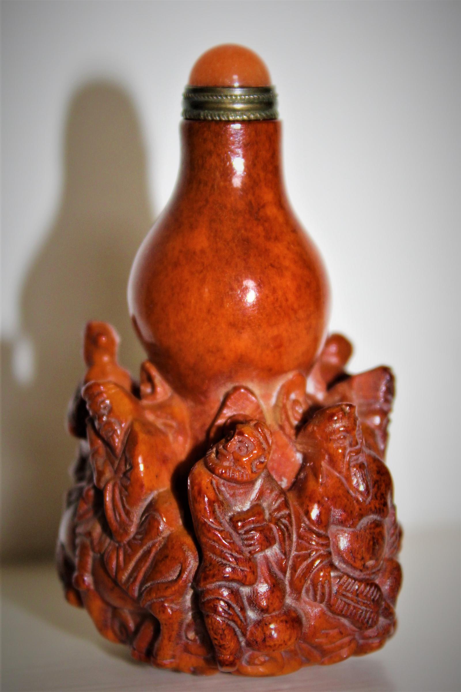 Delightful and unusual Chinese carved deer antler snuff bottle