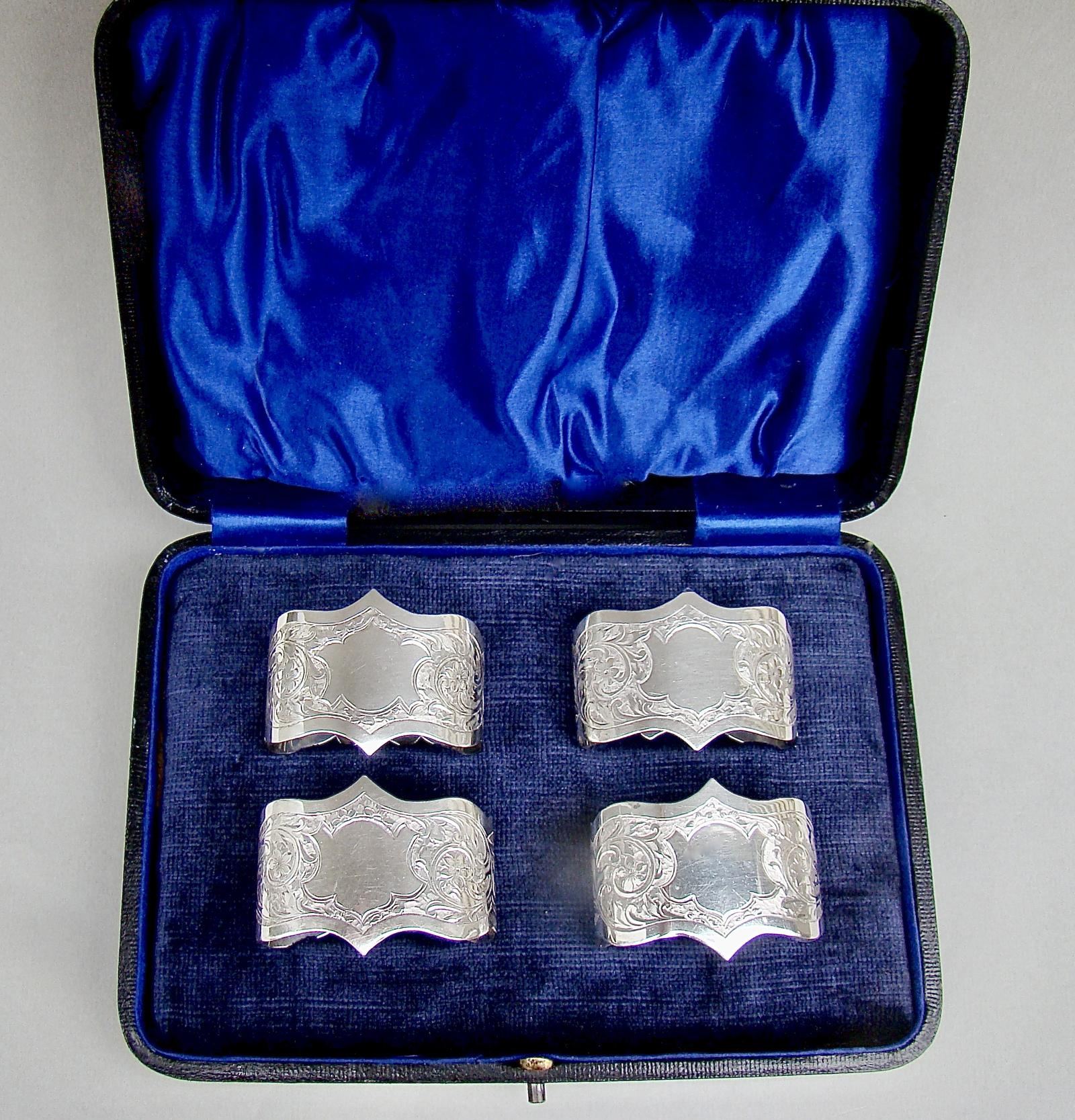 Delightful Cased Set Of Four Edwardian Solid Silver Napkin Rings By Robert Chandler, Birmingham 1904