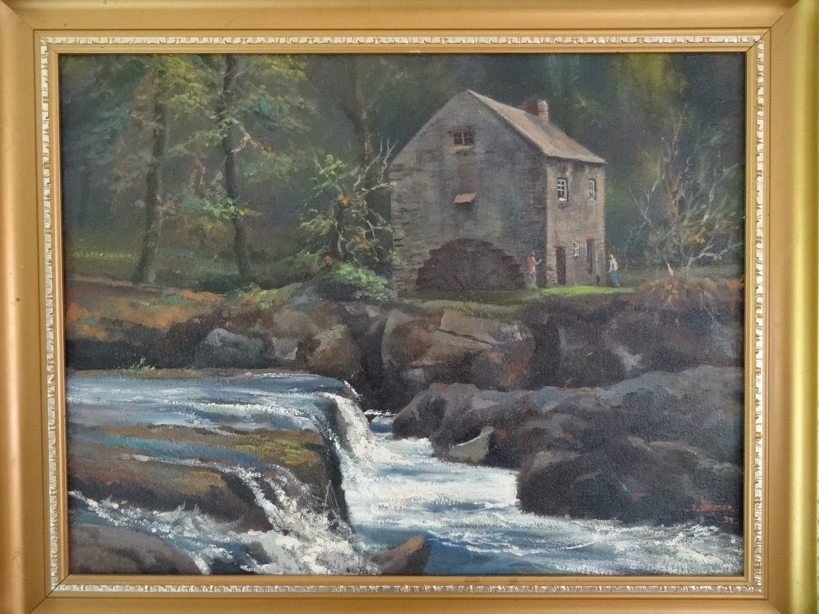 Delightful early 20th Century Watermill Building River Landscape Oil Painting