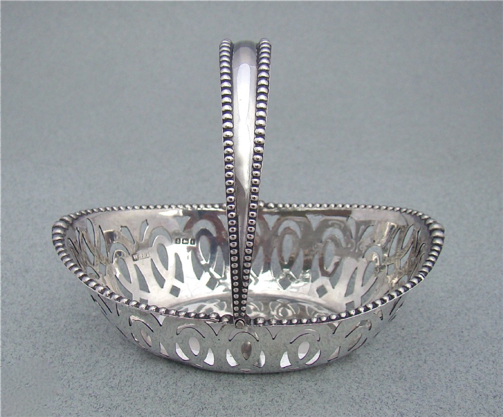 Delightful Edwardian Silver Swing-handled Bonbon Dish by W H Haseler, Birmingham 1908