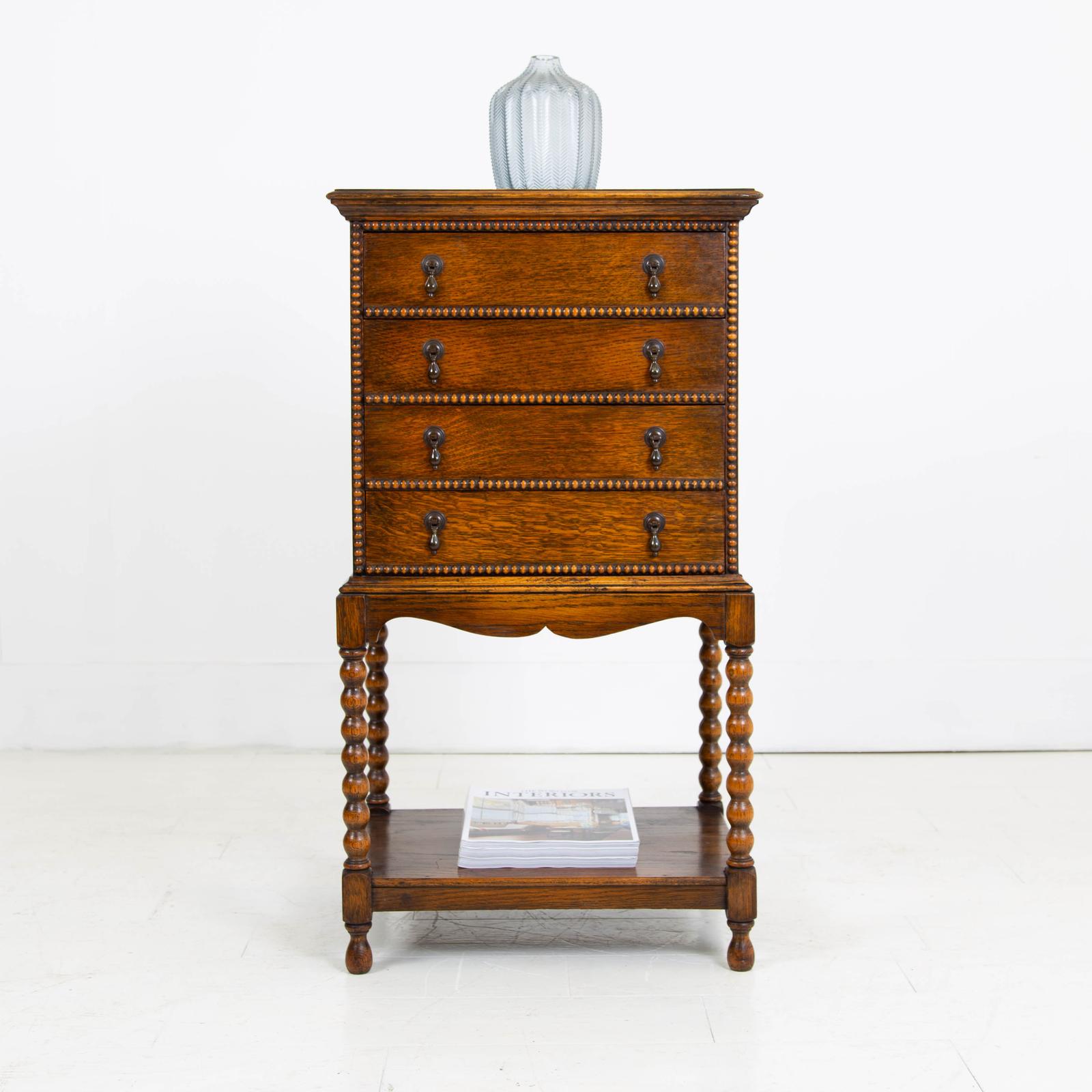 Delightful English Oak 4 Drawer Cabinet on Bobbin Legs C.1920