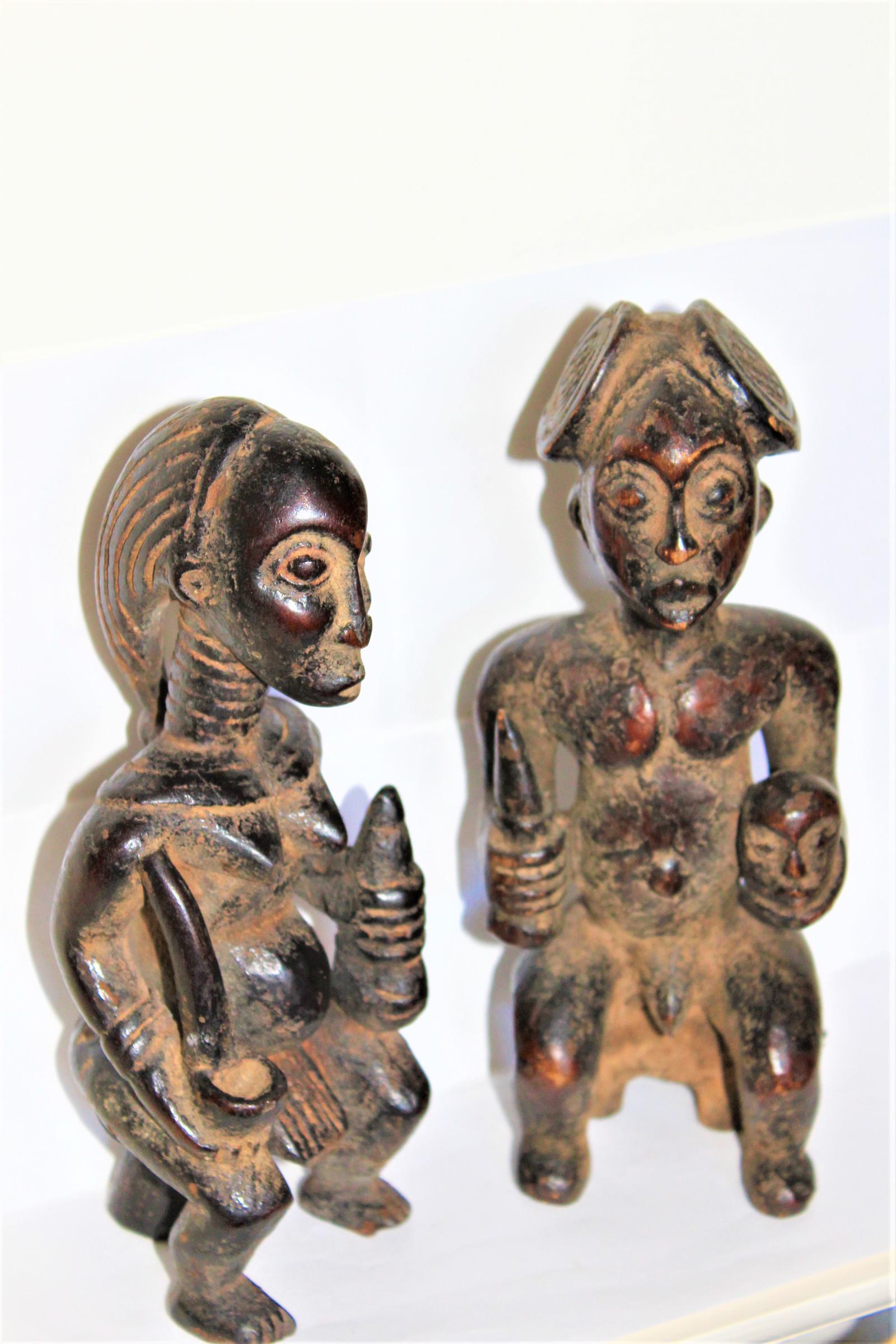 Delightful & Finely Carved Pair of Yoruba Wood Figurines