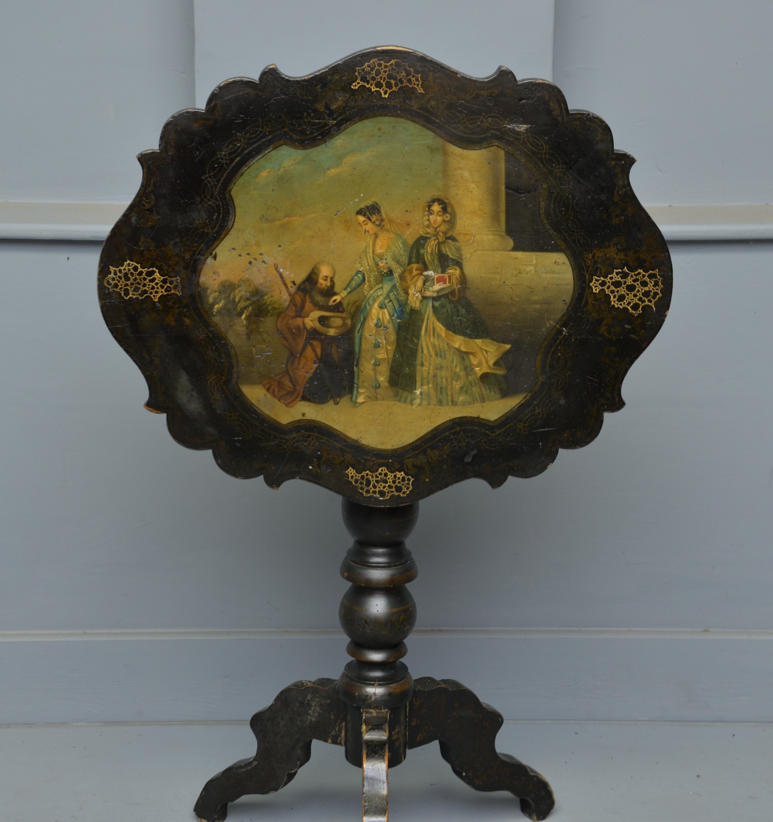 Delightful French Ebonised Tilt-Top Table Original Oil Painting