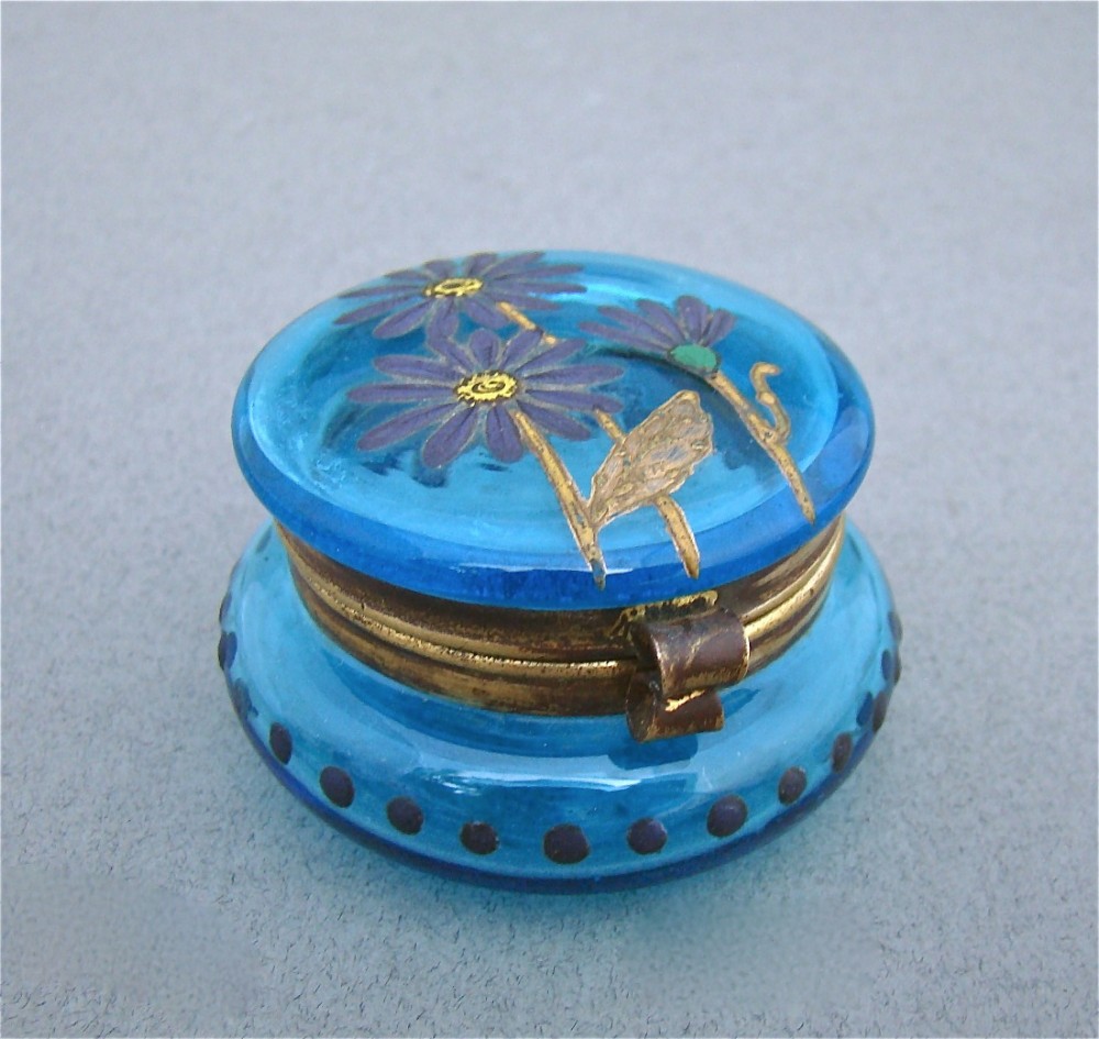 Delightful French Turquoise Glass Enamelled Trinket Box c.1890