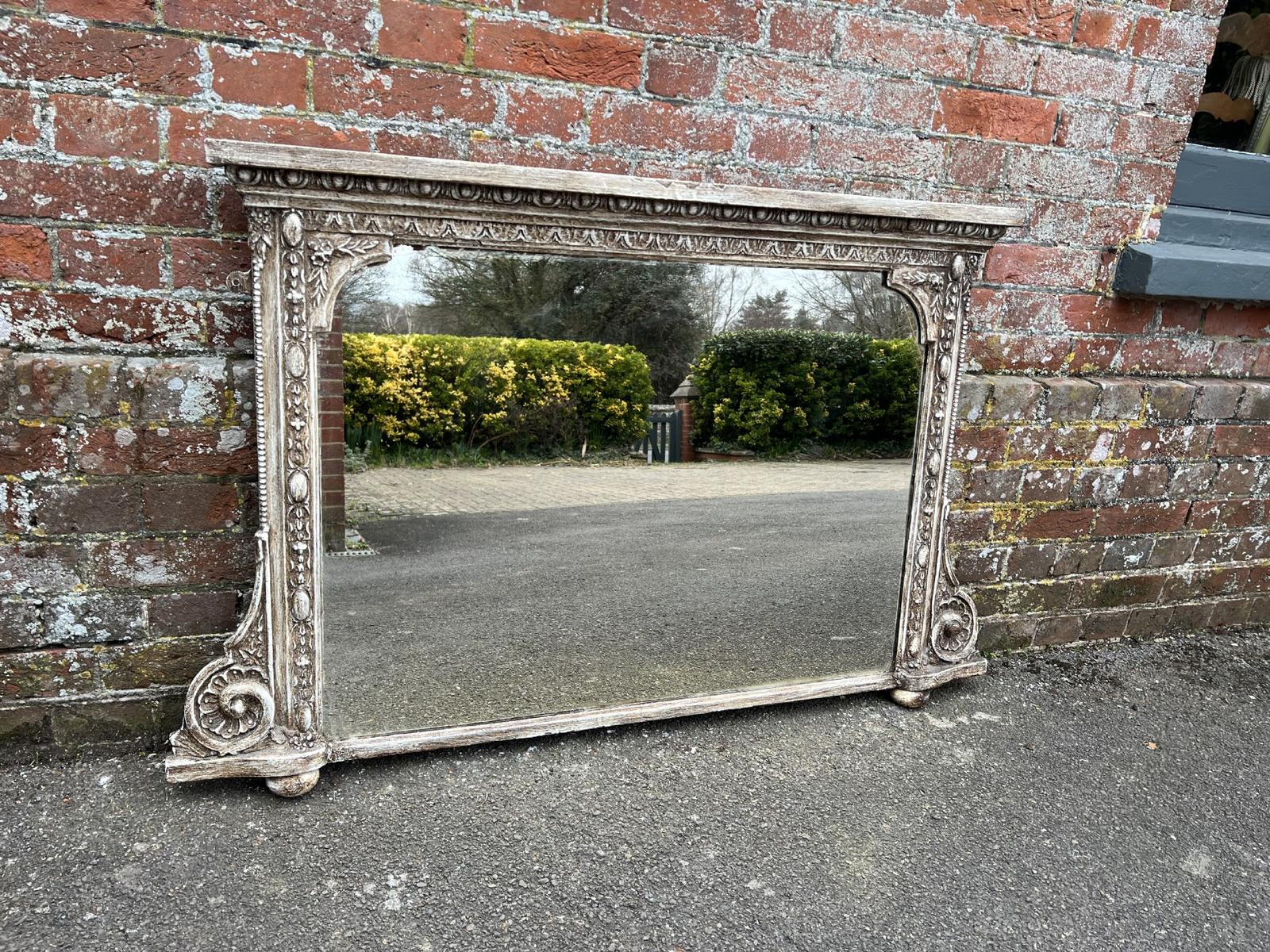 Delightful Highly Useful Size Antique English 19th Century Carved Wood & Gesso Painted Overmantle Mirror