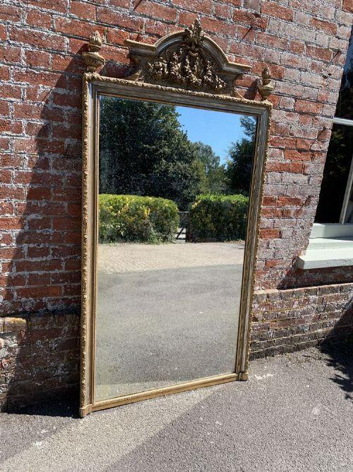 Delightful Large Antique French 19th Century Carved Wood & Gesso Original Silver /g Gilt Mirror