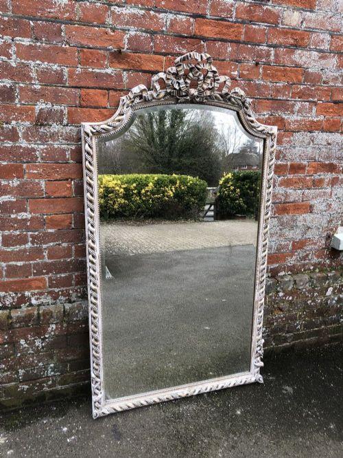 Delightful Large Antique French 19th Century Carved Wood & Gesso Shaped Top Mirror
